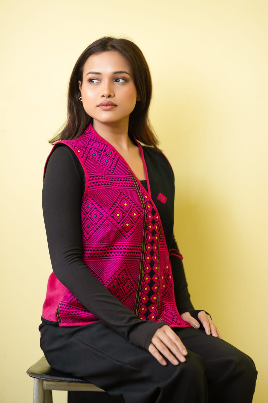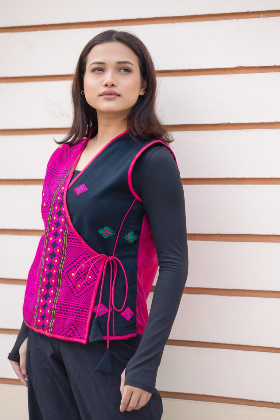 V-NECK BLOUSE WITH TRADITIONAL PATTERNS OF TRIPURA