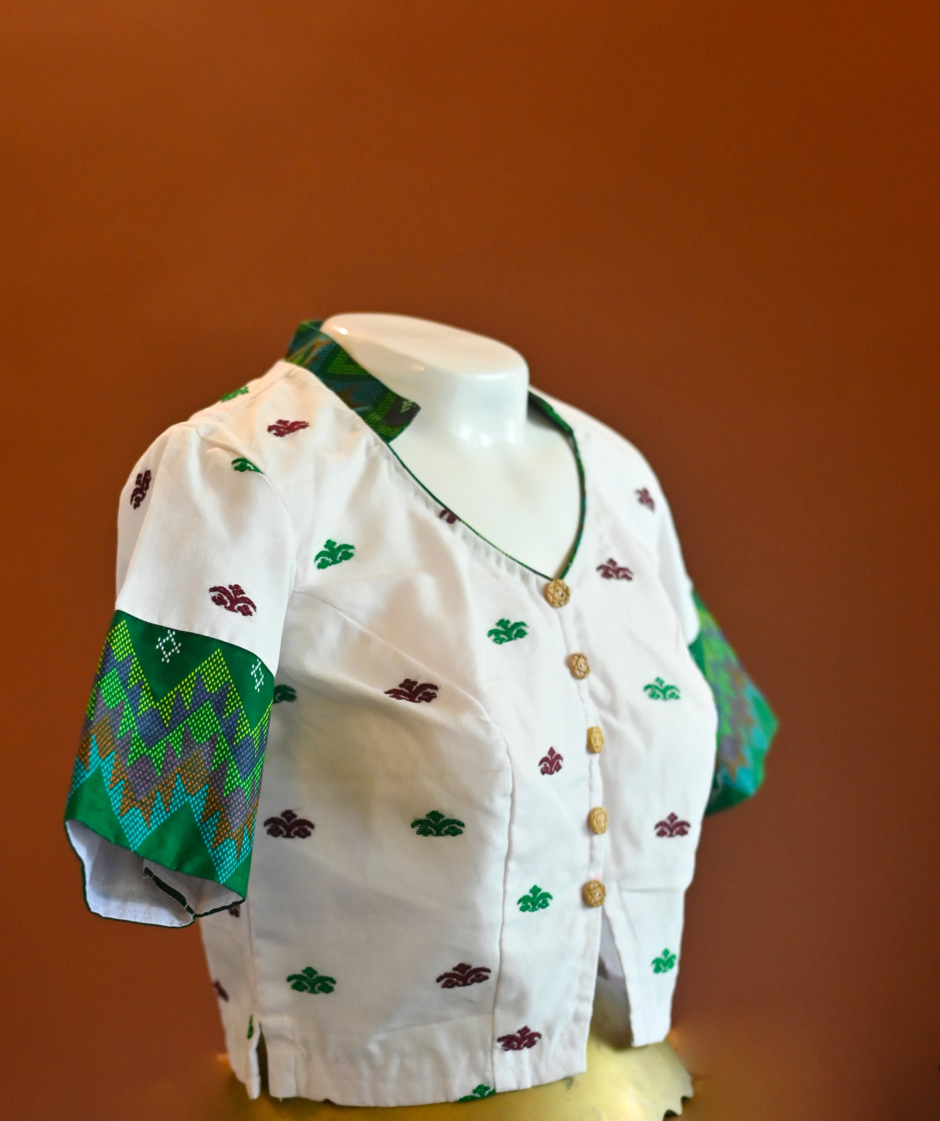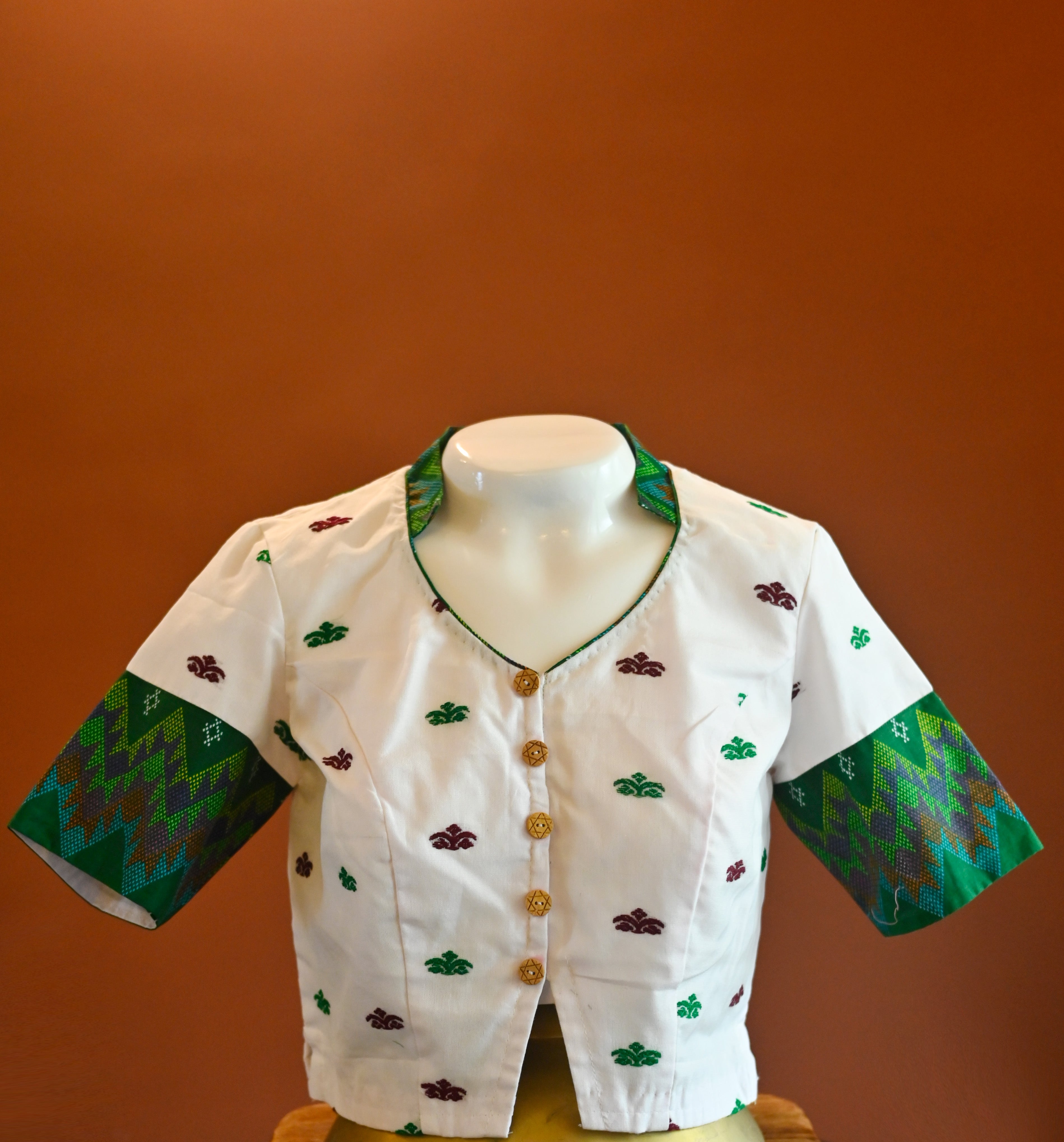 COLLARED NECK BLOUSE ITH TRADITIONAL PATTERN OF MEGHALAYA