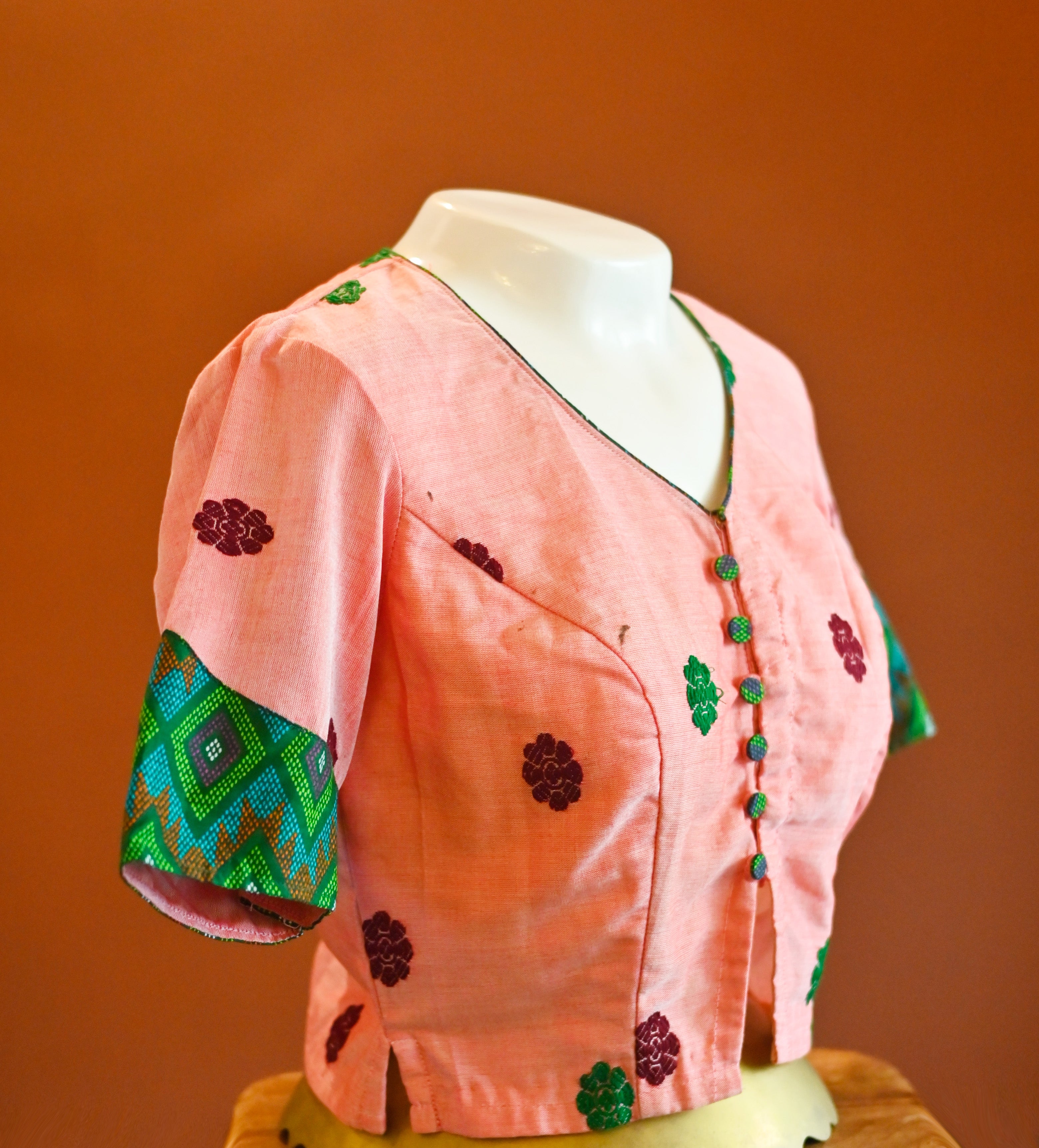 V-NECK BLOUSE WITH TRADITIONAL PATTERNS OF TRIPURA