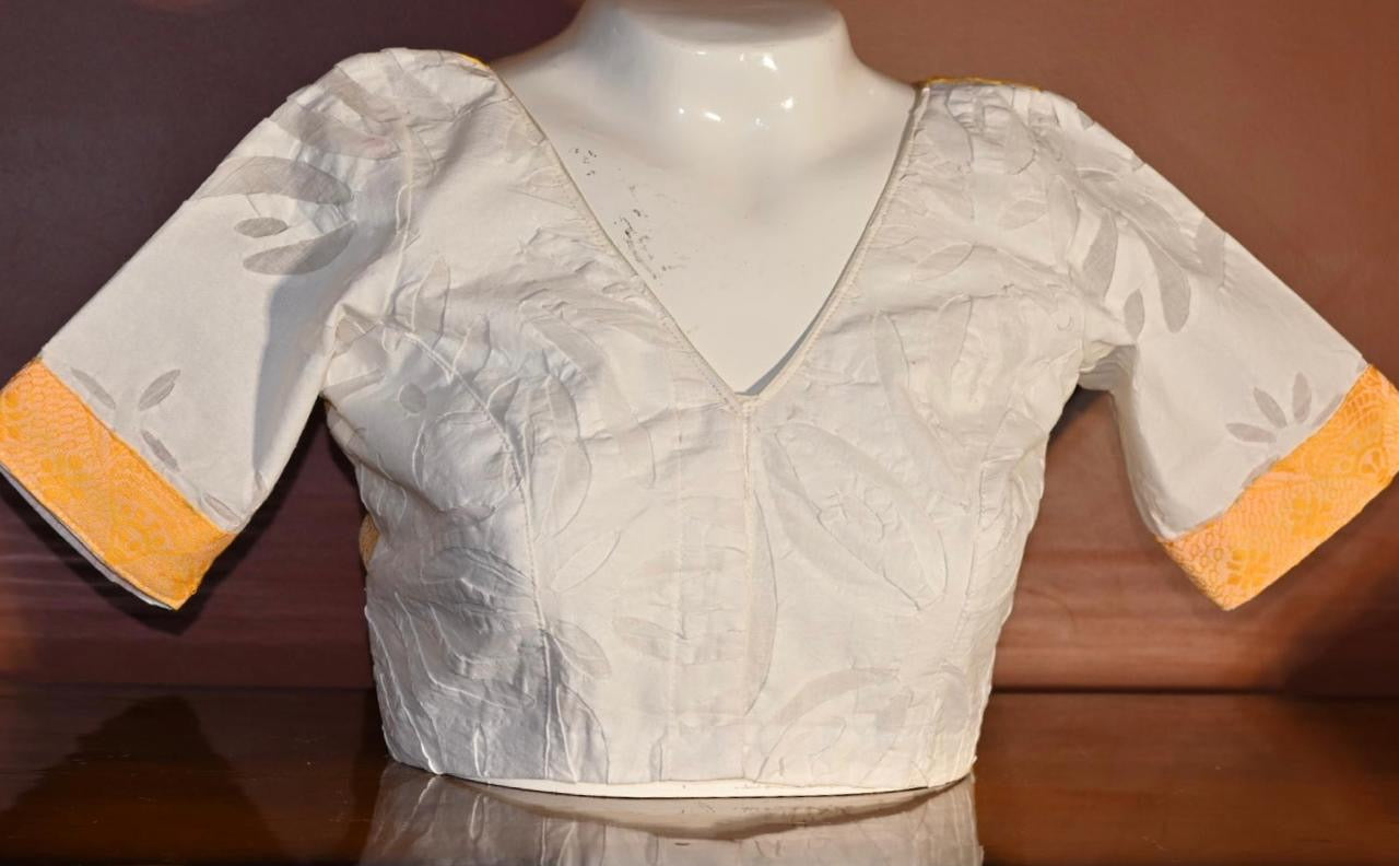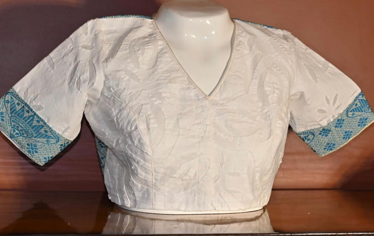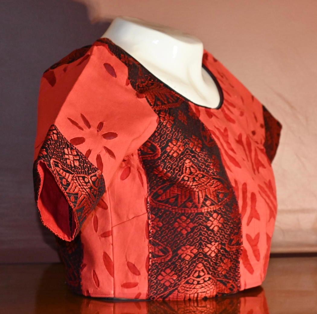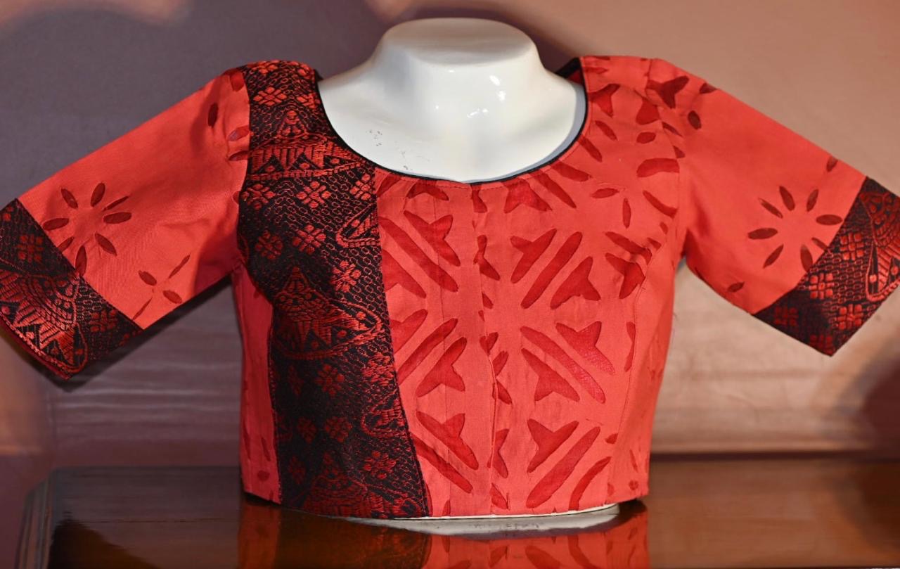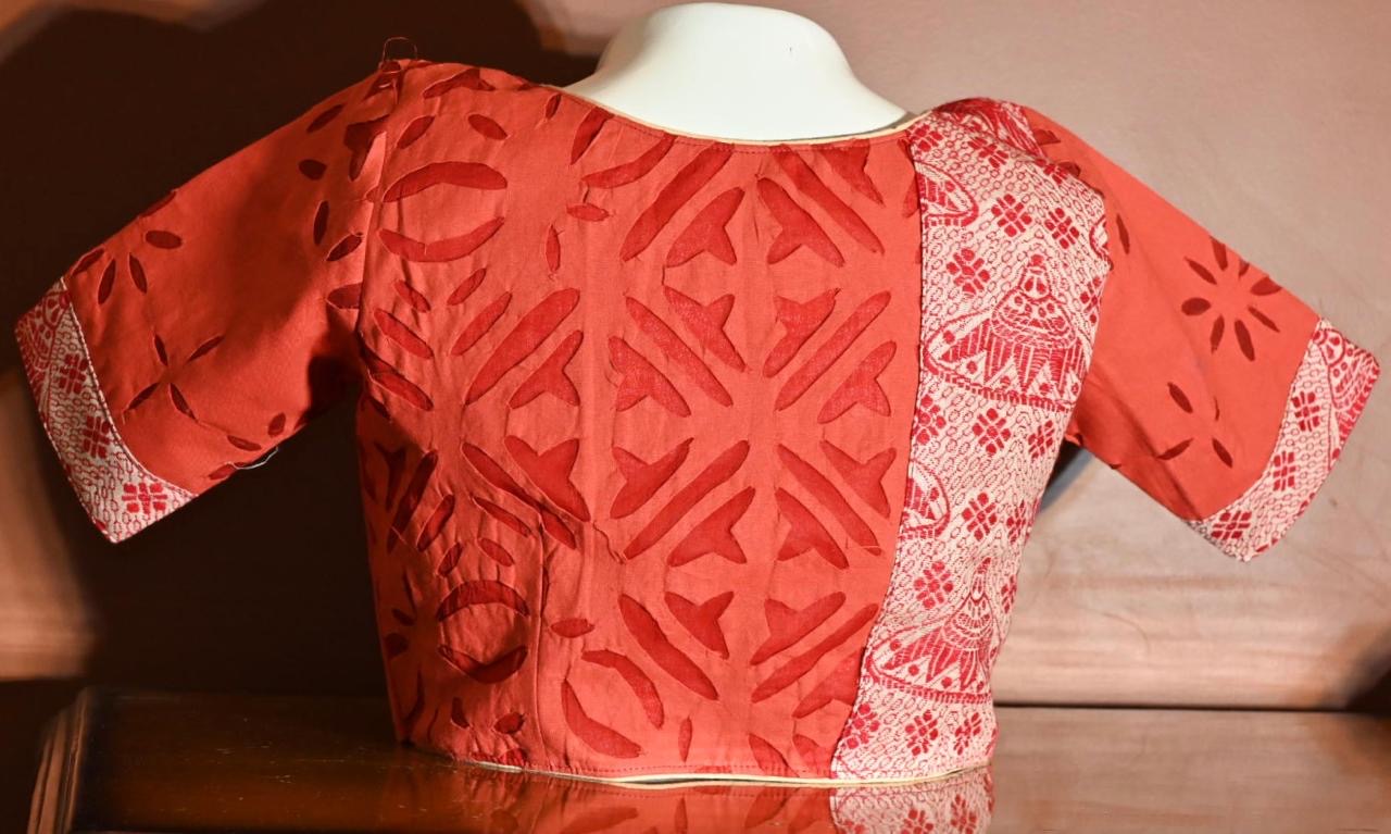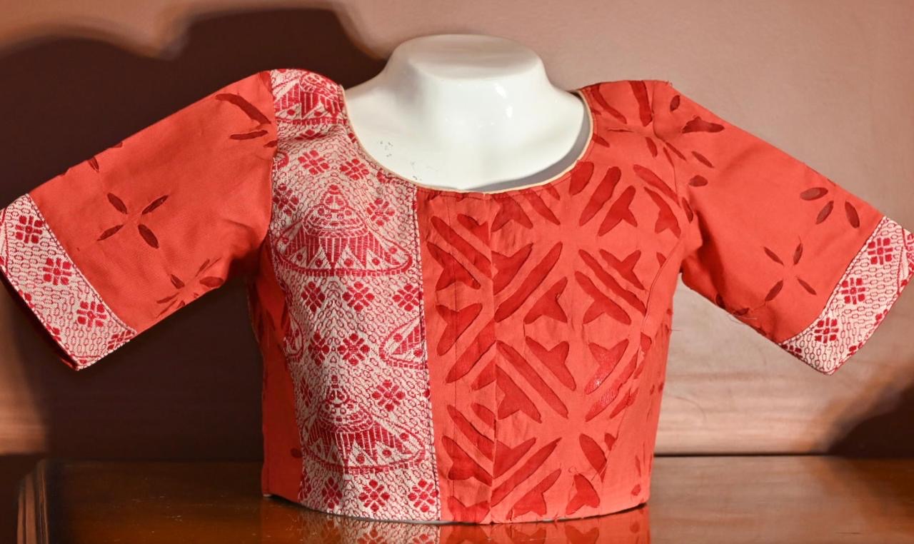 ASSAMESE JAPI DESIGNED BLOUSE FUSED WITH APPLIQUE/CUT WORK FABRIC OF RAJASTHAN