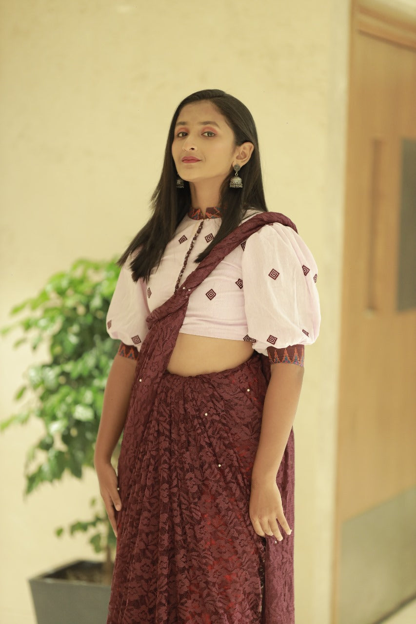 MANDARIN NECK BLOUSE WITH MOTIFS OF ARUNACHAL
