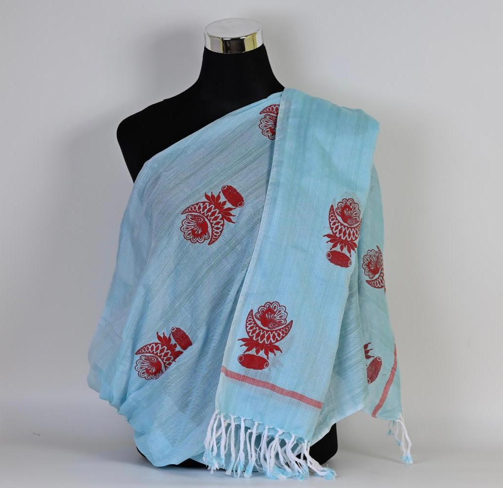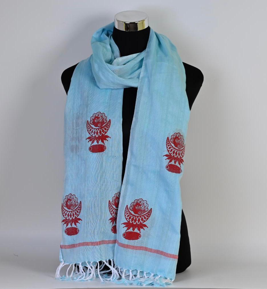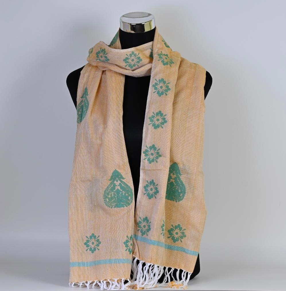 HAND BLOCK PRINTED COTTON STOLE WITH ASSAMESE MOTIFS
