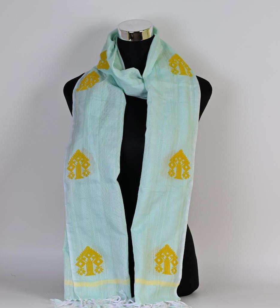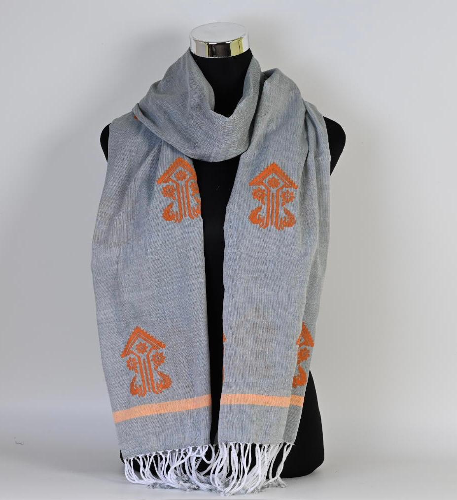 Hand-Woven Cotton Stole With Assamese Motifs